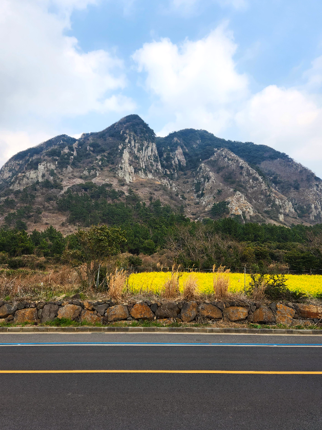 산방산 유채꽃 개화 시기도 조금 이른 봄인 2월부터 시작되어 2월 말~3월이면 절정의 유채꽃을 볼 수 있습니다