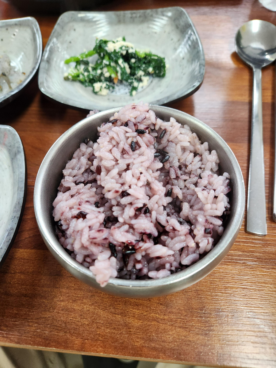 흑미 밥이었고, 개인 밥그릇에 덜어 먹는데