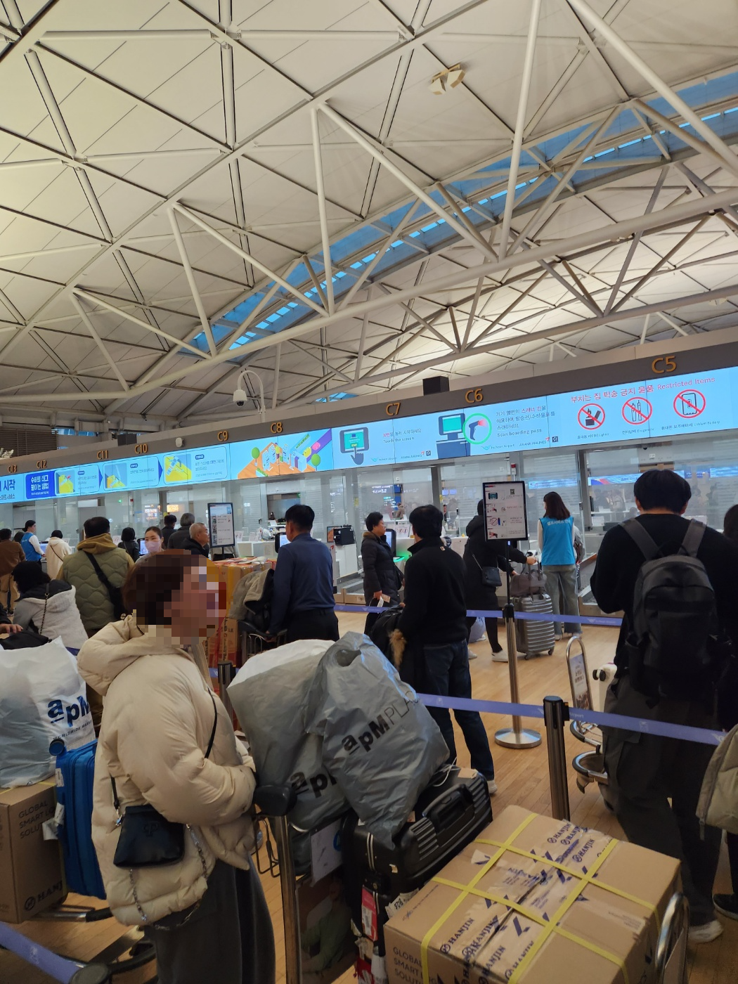 저는 온라인 체크인을 하여 모바일 탑승권을 미리 발급 받은 상태라서 가져온 캐리어만 부치기 위해 줄을 섰습니다.