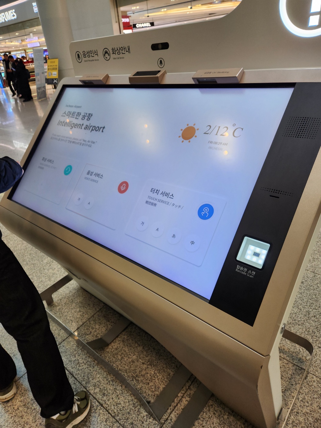 출국장 들어가자마자 보이는 이 스마트 화면의 탑승권 QR코드를 스캔하면 탑승하시려는 게이트 탑승구까지 지도를 통해 길을 안내해줍니다.