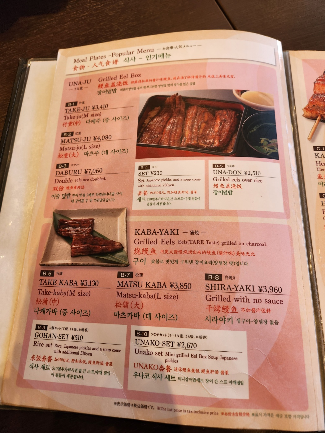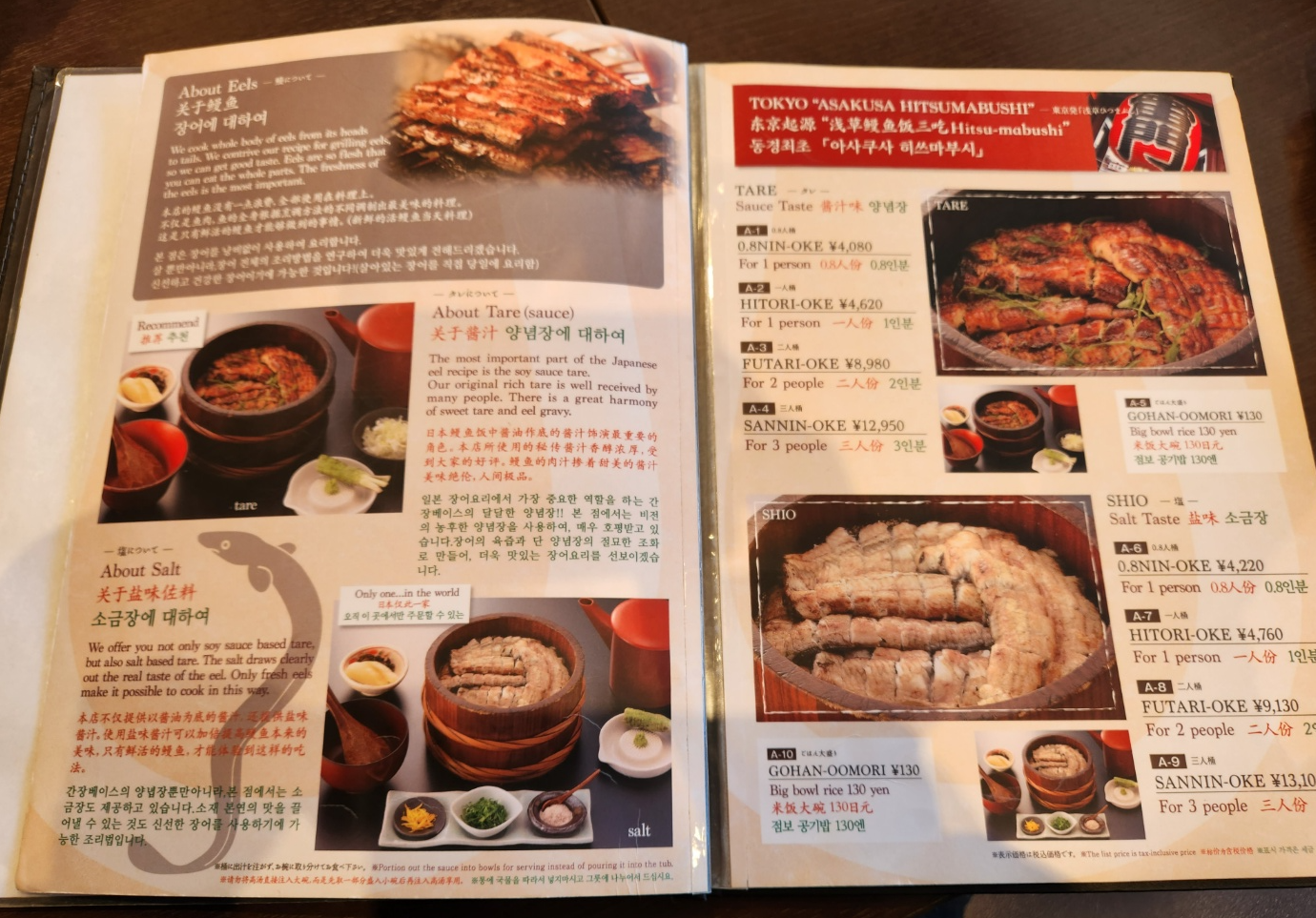 어떤 장어덮밥을 먹을지 고민하다가 저희는