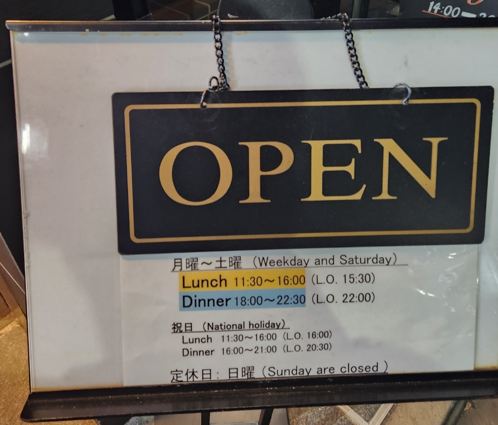 런치 : 오전 11:30~오후 4:00 (라스트오더 3시30분)