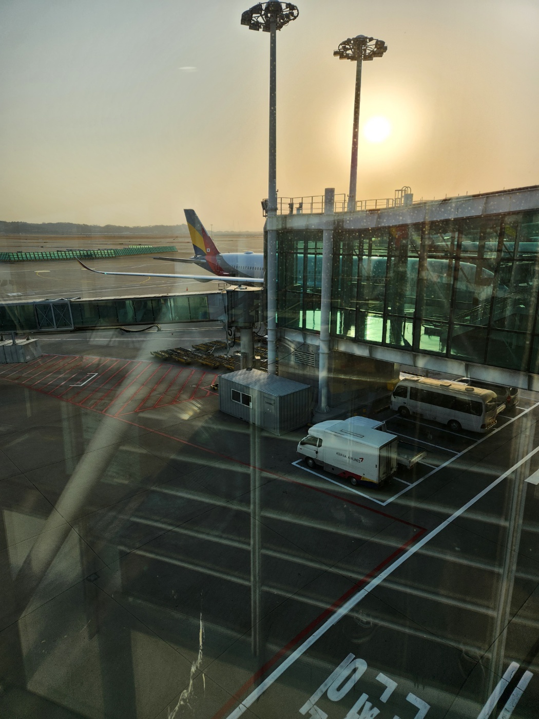 비행기 탑승 직전에 촬영했는데, 아직 이른 시간이라 해가 열심히 떠오르고 있었습니다 ㅎㅎ