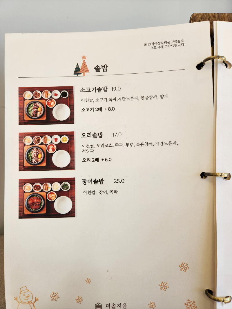 솥밥 종류는 총 6가지가 있었고, 지역이 이천이라 그런지 메뉴 설명에 이천의 특산물인 '이천 쌀'이 돋보였습니다.