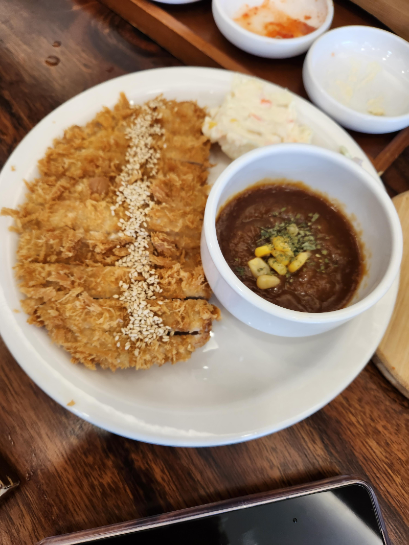 양이 부족할까봐 사이드메뉴로 등심튀김과 떡갈비를 시켰는데, 떡갈비는 나오자마자  5명이 한숟가락씩 가져갔더니 순식간에 없어졌습니다.