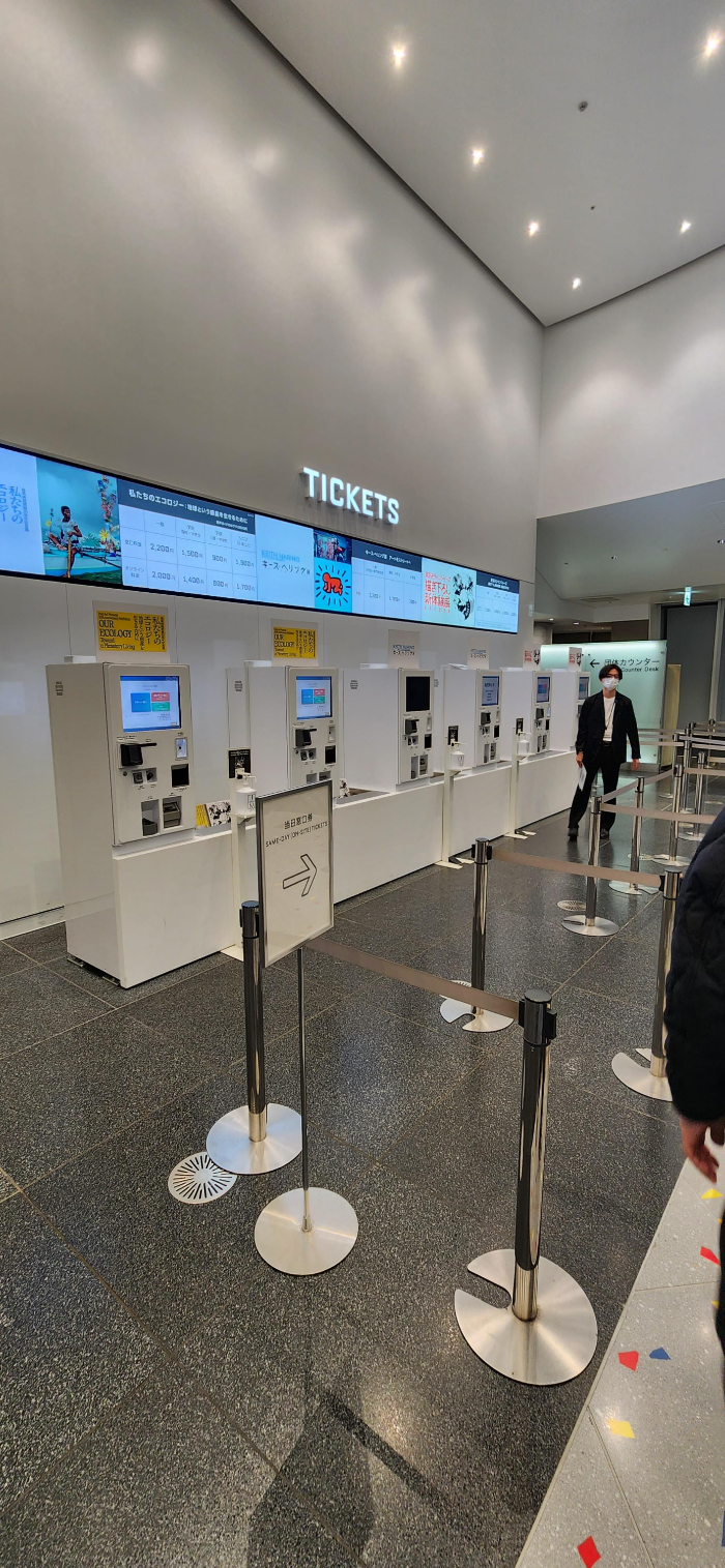 엘리베이터를 타고 3층으로 올라가면 도쿄시티뷰 로비가 있습니다. 로비의 인포메이션 데스크의 직원에게 클룩에서 구매했던 티켓의 모바일 QR코드를 보여주고 실물 티켓을 받습니다. 현장의 티켓발매기에서도 예약없이 티켓을 구입할 수 있습니다.
