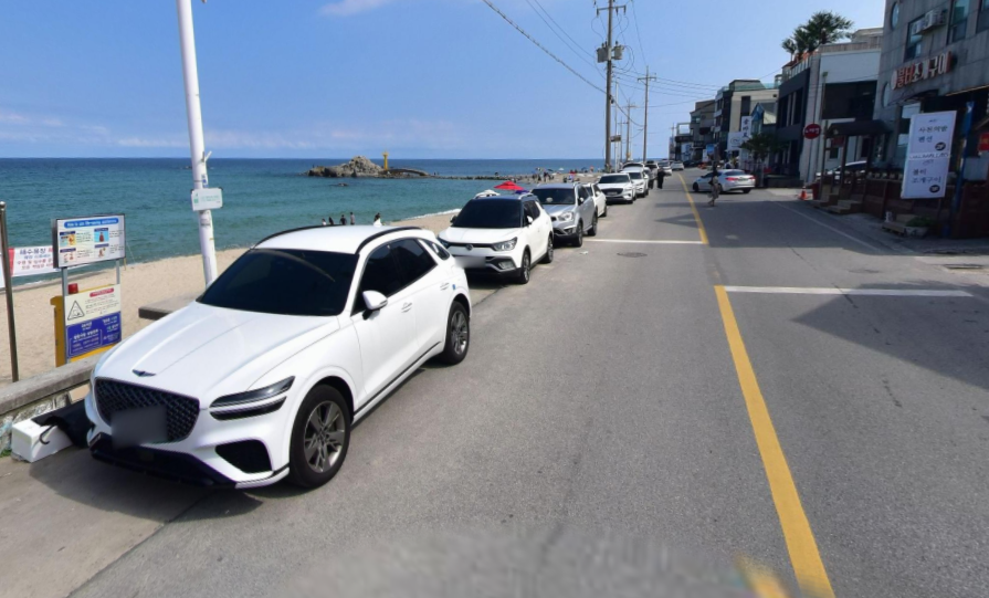 주차는 사천진해변 갓길에