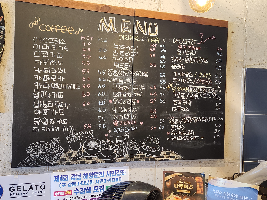 칠판으로 보이는 메뉴판에