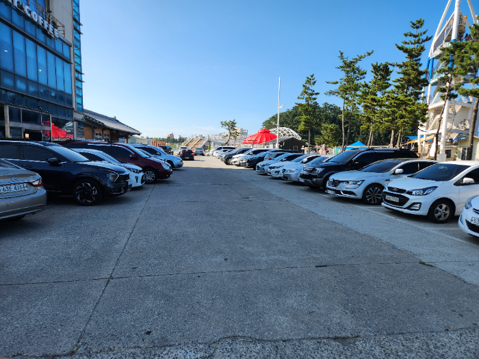 남항진 해변 공영 주차장입니다.