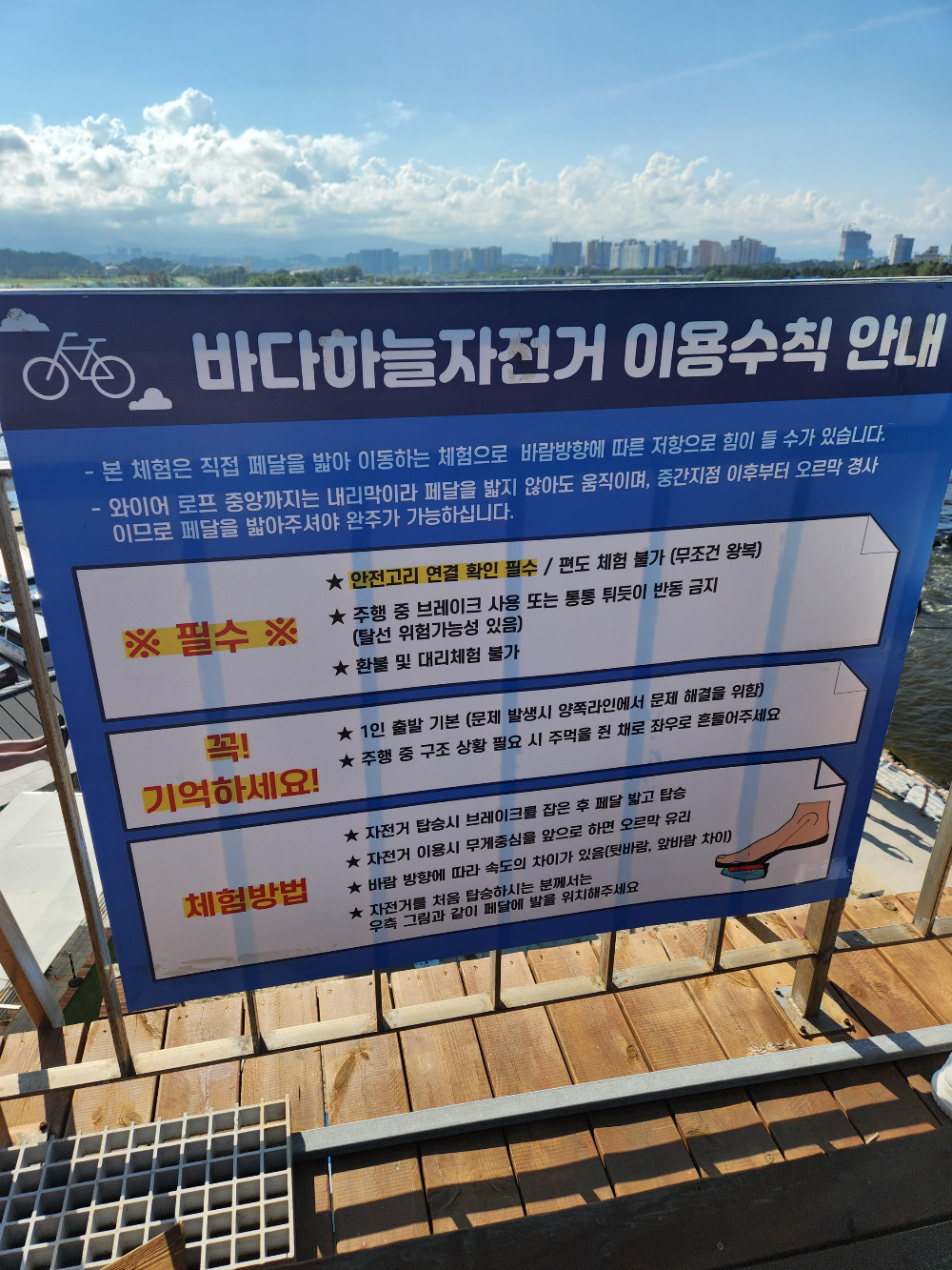 출발대 옆에 '하늘자전거 이용수칙'이 적혀있어서