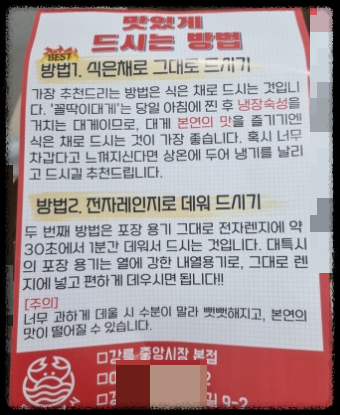 '맛있게 먹는 방법'이 적혀있는 종이도