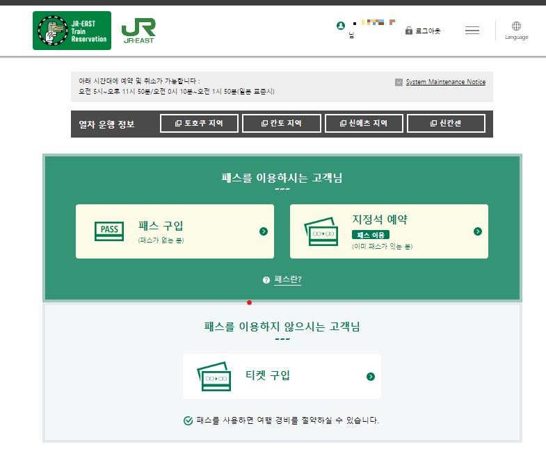 두번째 페이지에서 '패스 구입' 클릭합니다.