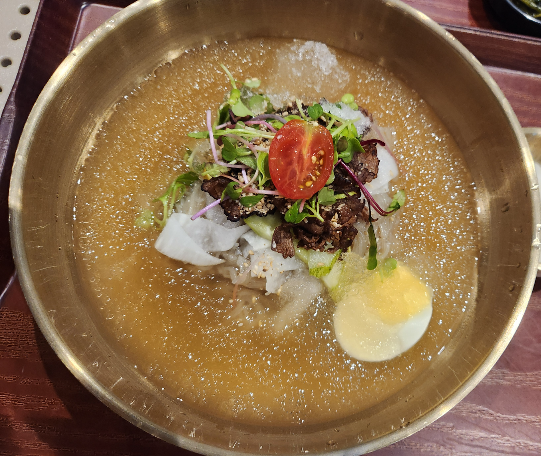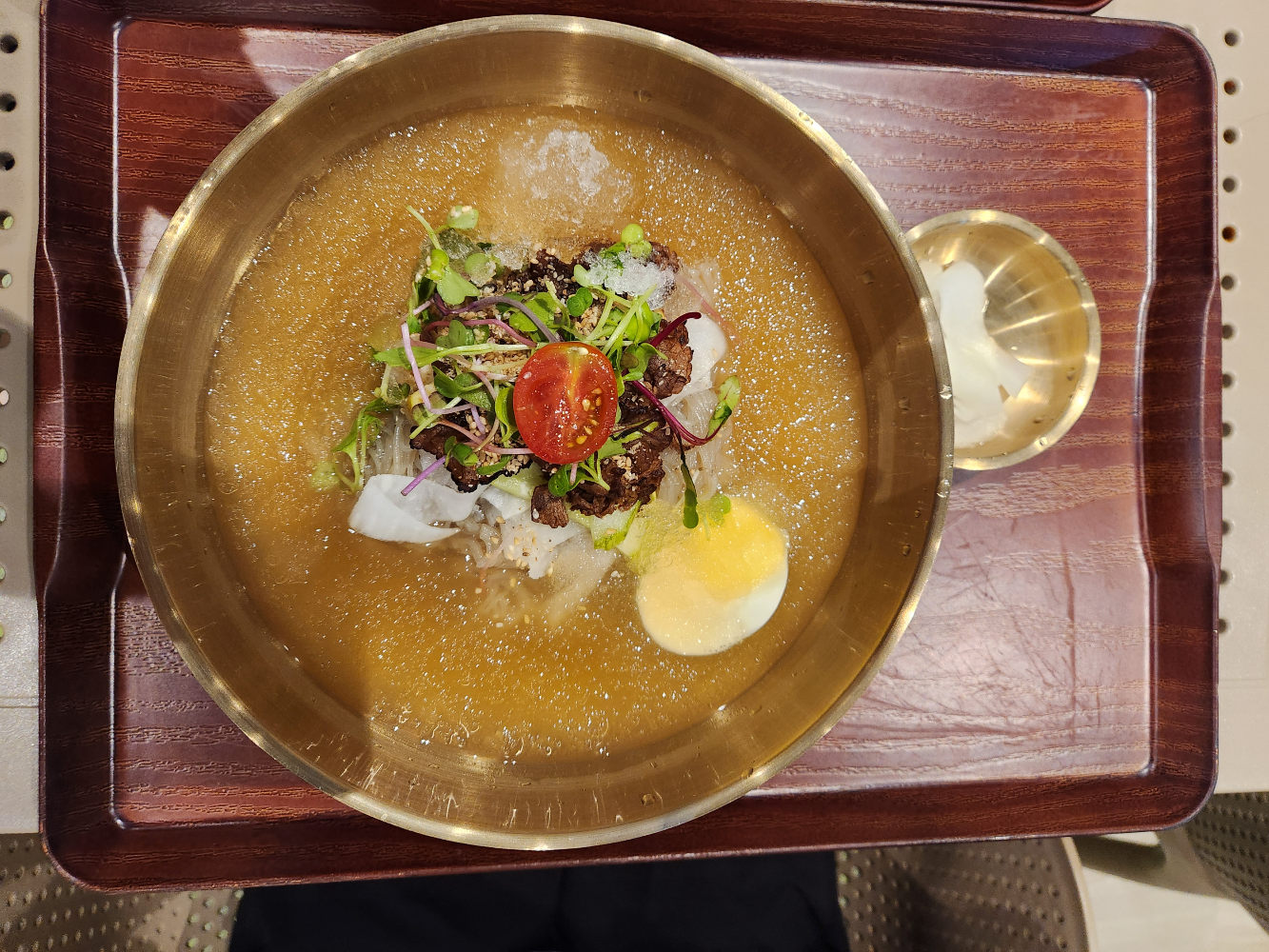 여름계절메뉴인 숯불 직화고기 냉면입니다.