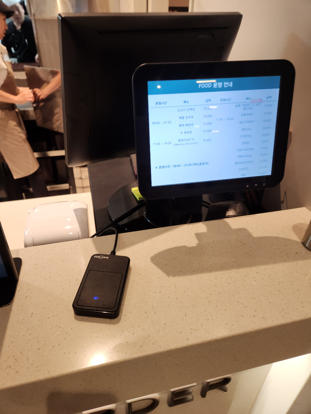 사진 속 검은색 결제기에 태그 하면 됩니다!