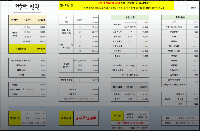 - 초장집(상차림식당), 5층 '하늘채별관' 이용 (땅끝마을 제휴)
