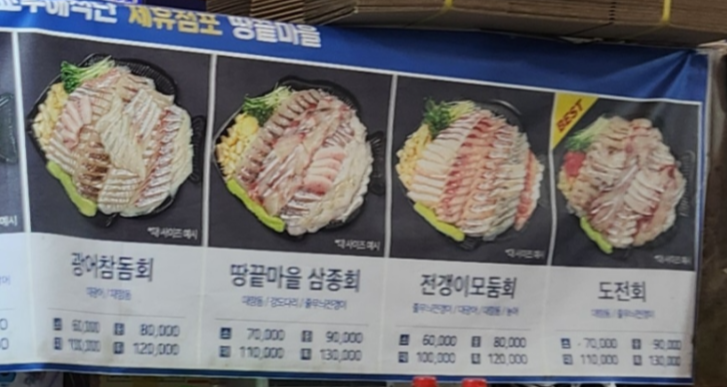 체감상 대방어 70% 광어 15% 참돔 15%로
