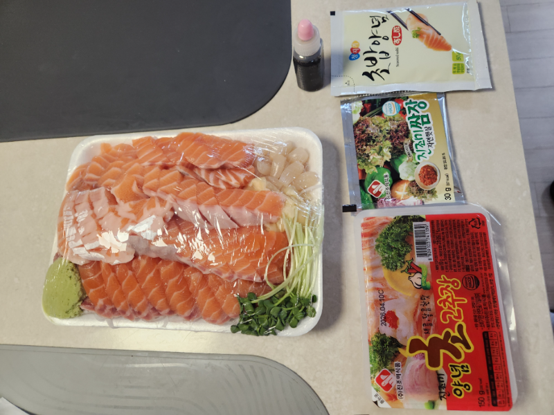 고추, 마늘, 김, 초장, 간장으로 구성돼 있고