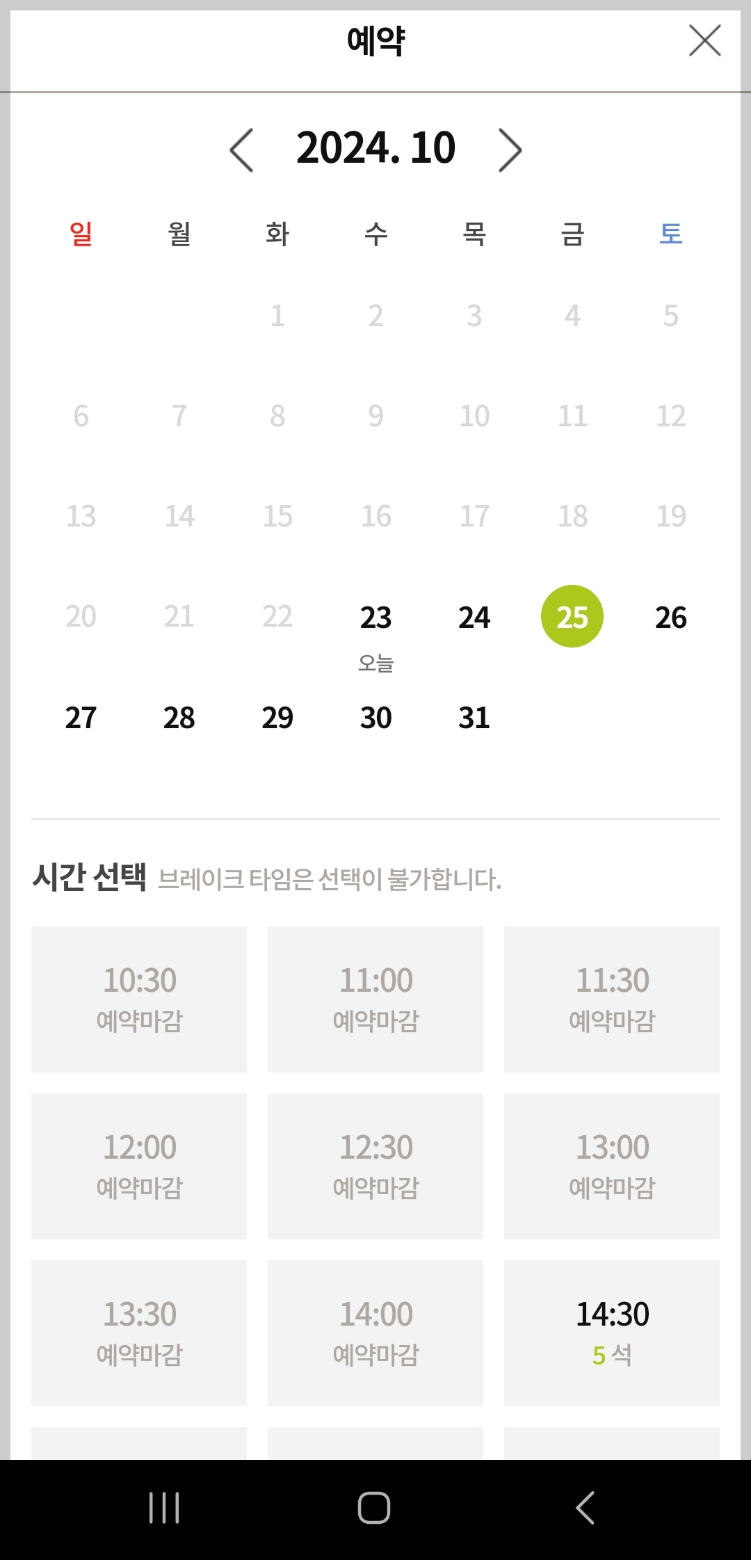 '예약'버튼을 클릭하게 되면 위의 사진에 있는