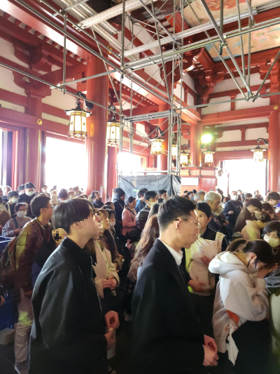 센소지 본당으로 들어가려는데, 향로가 있는 절의 한 가운데서부터 센소지 본당 안으로 이어지는 긴 줄이 있어서 줄따라 앞쪽으로 가봤습니다.