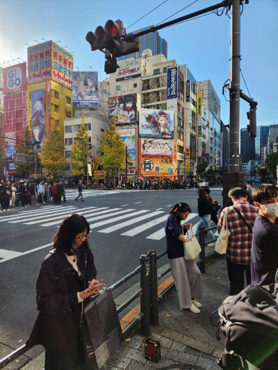 멀리서부터 건물에 붙어있는 인형, 캐릭터 등의 화려한 간판을 보고 이곳이 오타쿠의 성지 '아키하바라'인 것을 알 수 있었습니다