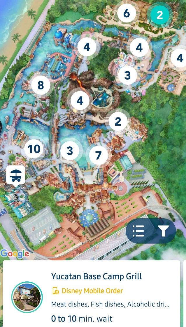 당일에 테마파크에 입장시 모바일 앱으로 식당을 예약할 수 있었습니다.