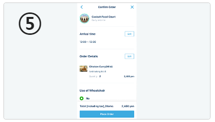 - 메뉴가 준비되면 수령 카운터 장소(번호)가 앱으로 알림이 오니 지정 카운터에서 음식을 수령.