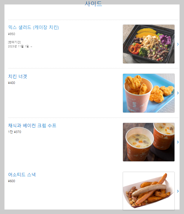 테마파크 운영시간이나 날씨 계절, 시간대에 따라 판매를 종료하는 경우가 있습니다.