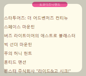 가장 인기있는 어트랙션들로 구성되어 있습니다.
