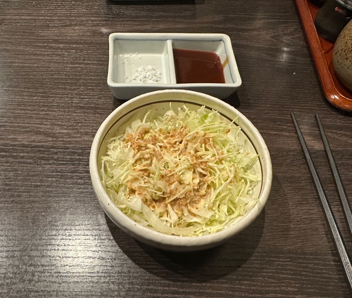 한국의 돈까스 집처럼 양배추 샐러드가 나왔고,