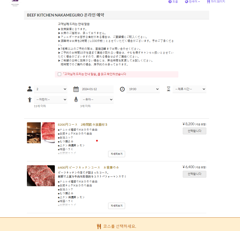 (나카메구로점 예약 홈페이지와 다릅니다.)