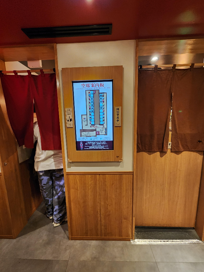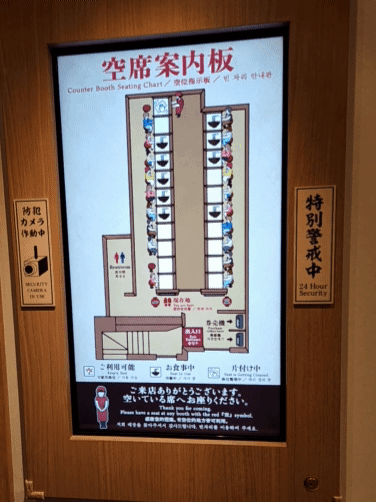 웨이팅을하며, 내부 끝까지 들어왔더니 '빈자리 안내판'이 벽에 걸려 있있습니다.