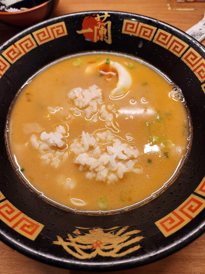 도쿄여행 첫날에 이치란을 먹고 저 뽀얀 육수에 감동받아 마지막날에 꼭 밥을 추가하겠다고 다짐했었는데,