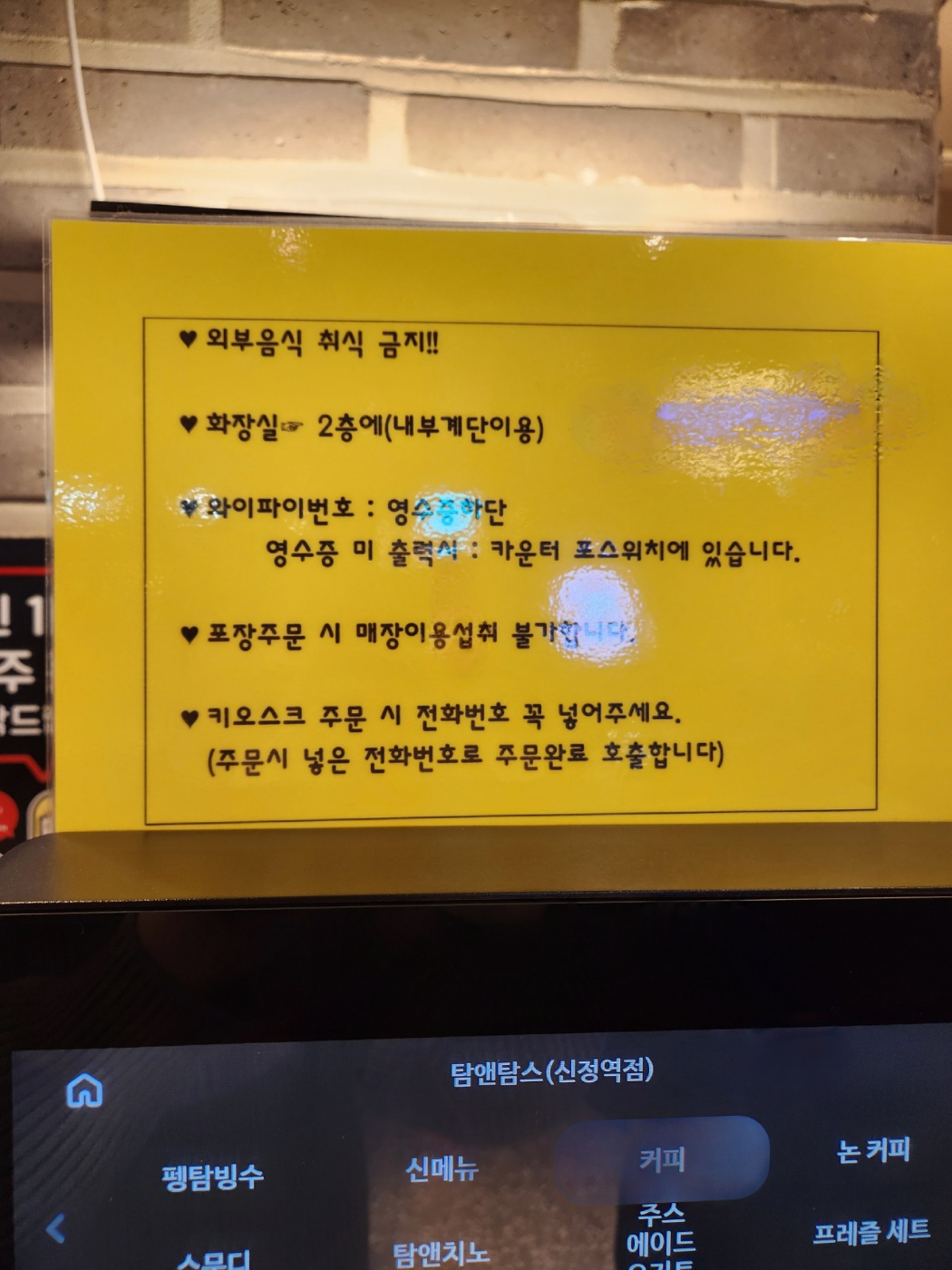 - 와이파이번호 : 영수증하단