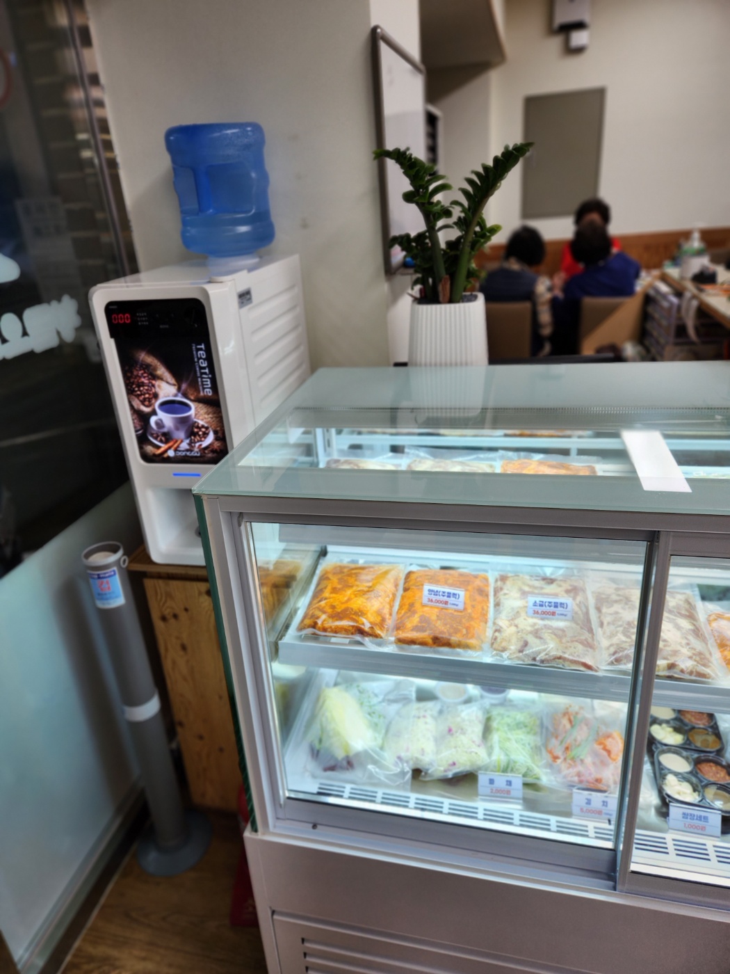황금오리농장의 포장용 음식은 카운터 앞에 있는 진열 냉장고에서 확인하실 수 있습니다.