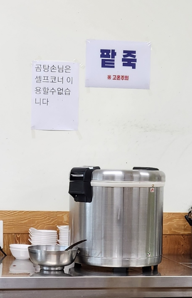 단, 평일 점심 메뉴인 오리곰탕 손님은 셀프코너 이용할 수 없다고 합니다!