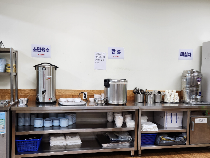 소면육수와 팥죽, 매실차도 셀프로 가져가서 드실 수 있습니다.