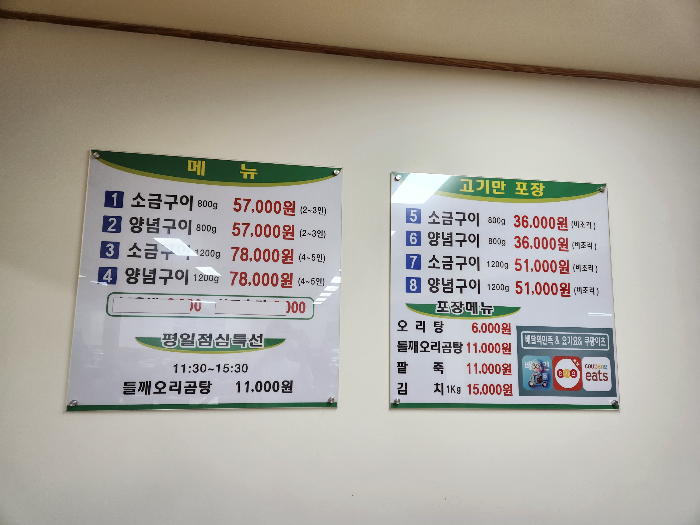 고기 양은 일반 성인남자 둘이서 800g(2~3인분) 먹으면 정말 배부르게 먹을 수 있습니다.