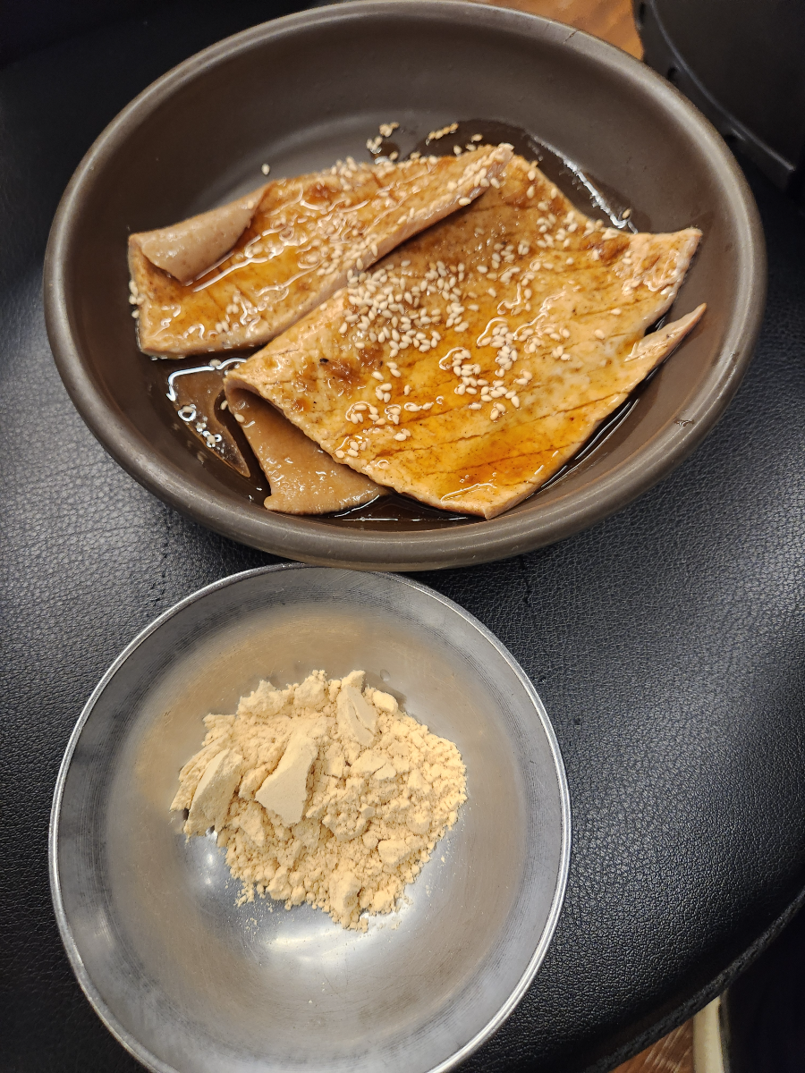 오겹살보다는 조금 더 담백한 느낌이었어요.