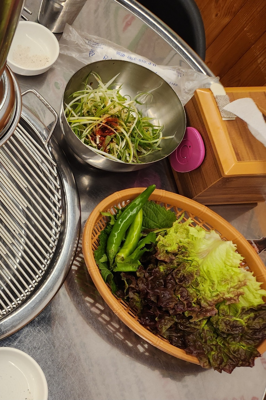 - 샐러드바, 깔끔하고 쌈채소, 밑반찬 다양! (파김치 원픽!)