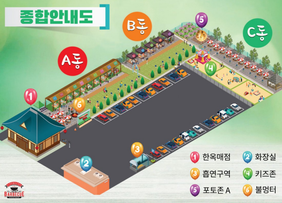 바베큐장 자리를 안내해 줍니다