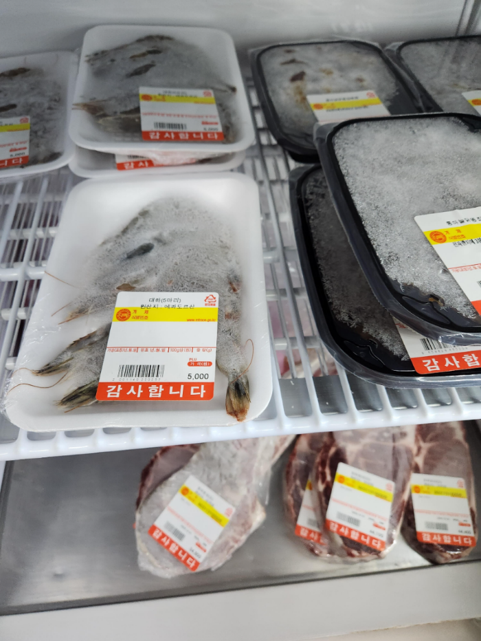 매점에 있는 고기 종류와