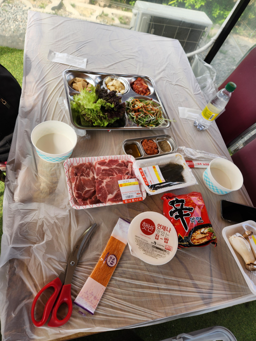 단출하지만 고기에 라면까지!