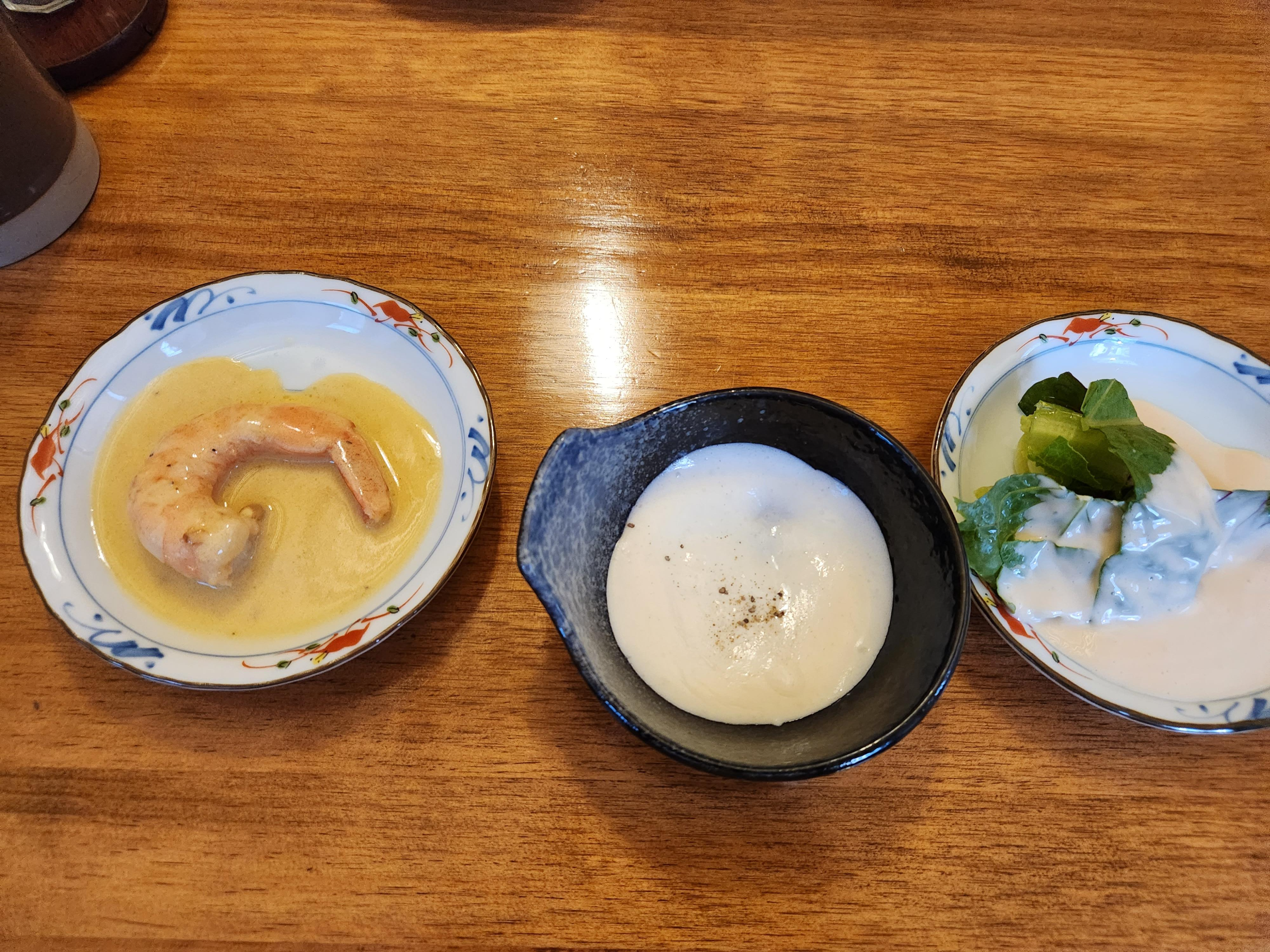 샐러드, 수프 다음으로 식전 요리로 새우요리가 나왔습니다.