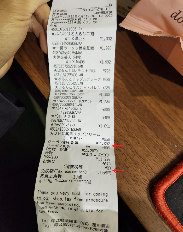 돈키호테 영수증(면세+할인쿠폰)