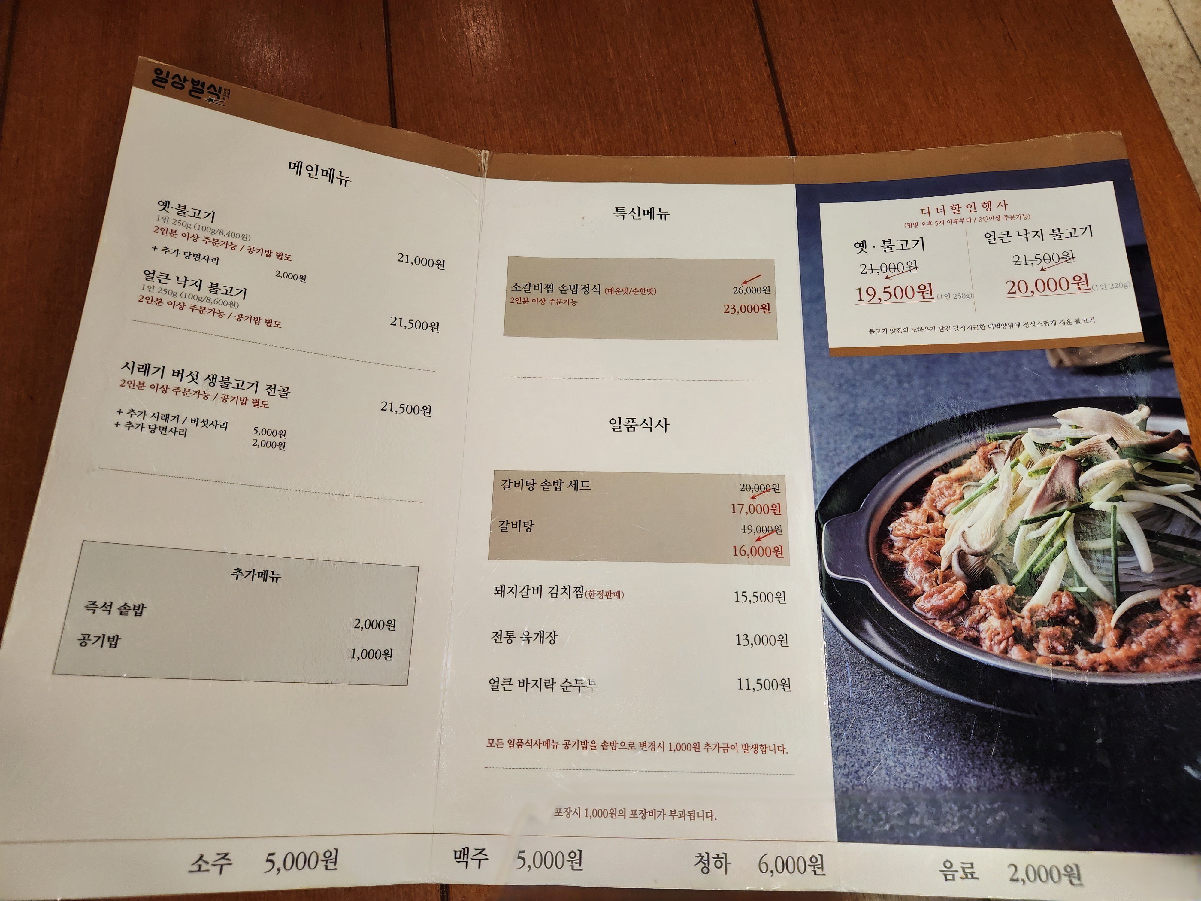 메인 메뉴인 불고기나 갈비찜, 갈비탕과