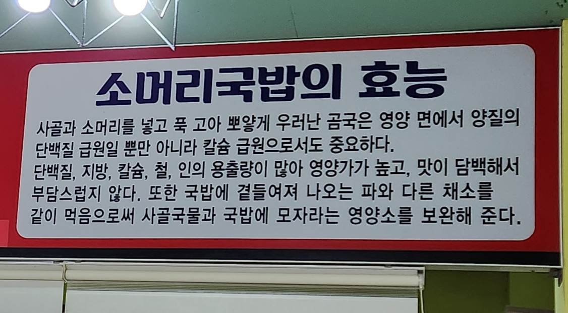 소머리국밥의 효능도 적혀있어, 음식을 기다리면서 읽어봤습니다. 양질의 단백질 뿐만 아니라 칼