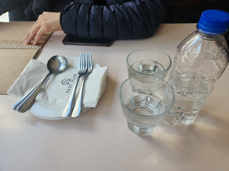 직원분이 수저 포크와 접시,