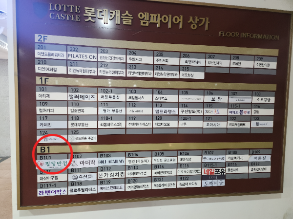 지하1층 엘리베이터 근처 복도 끝에 있습니다.