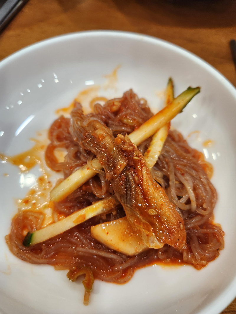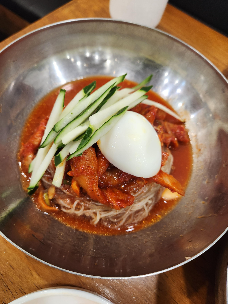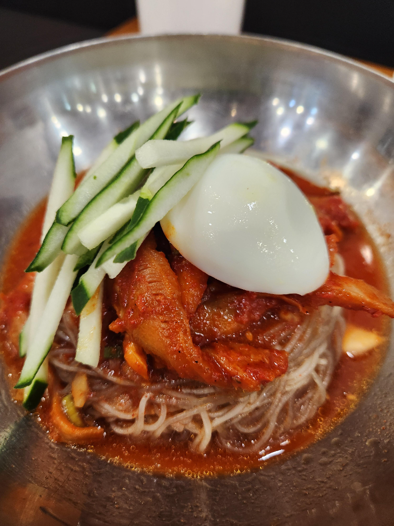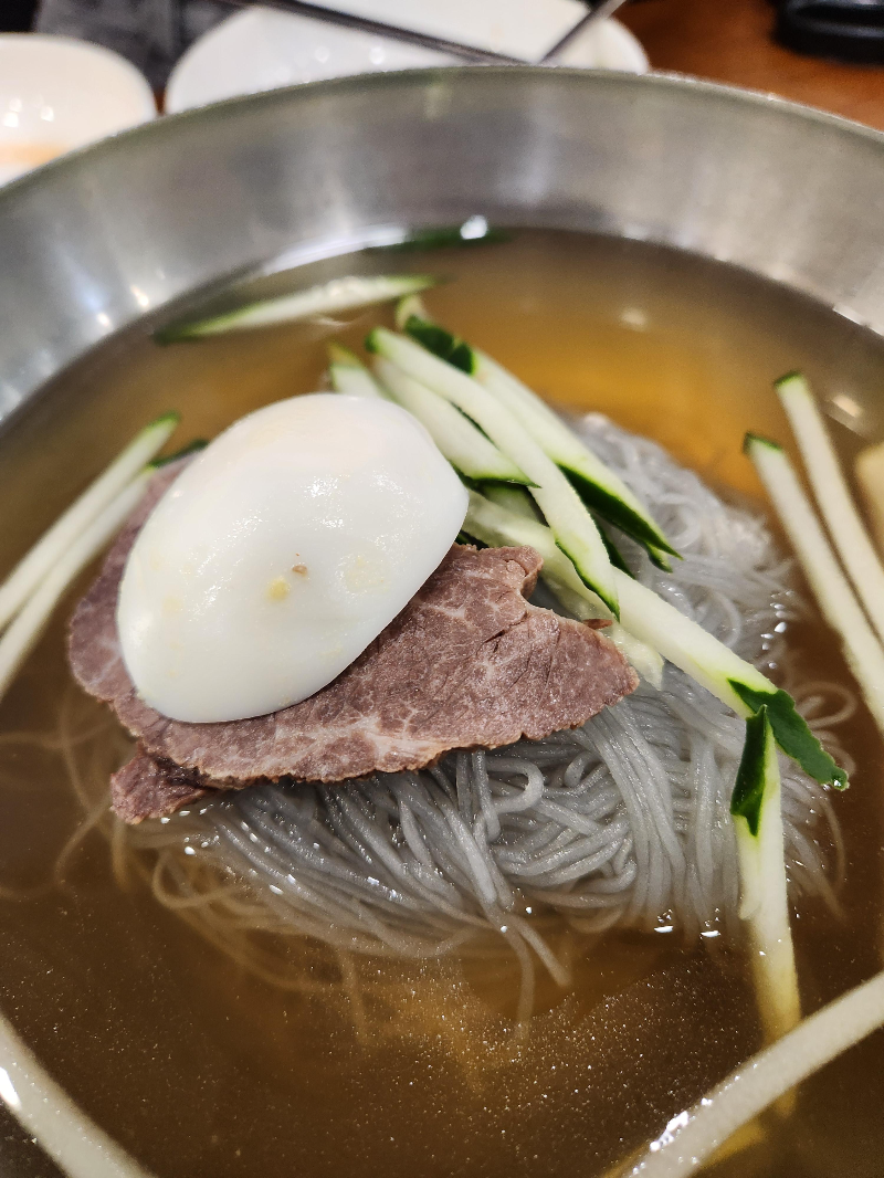 다른 물냉면 육수보다 좀 더 담백한 느낌이 강헀어요!