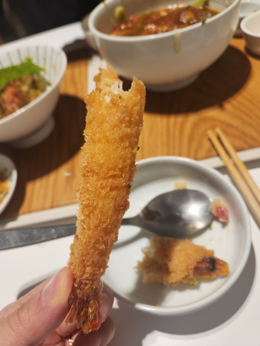 왕새우 튀김이 2개 올려져 있었어요.